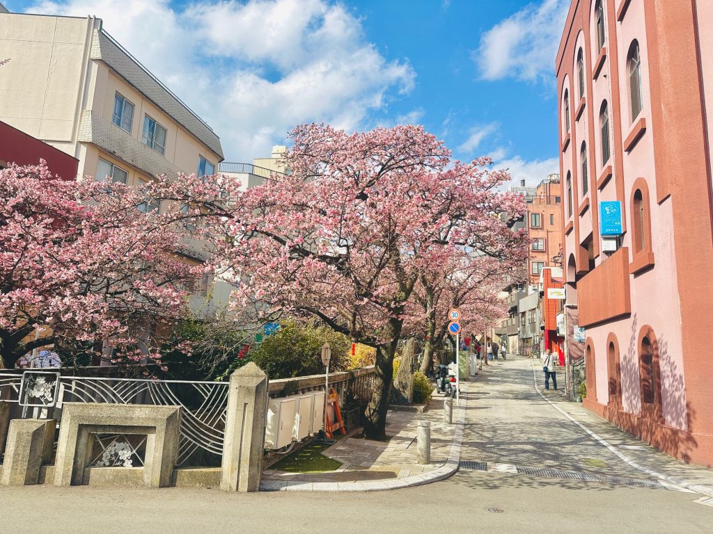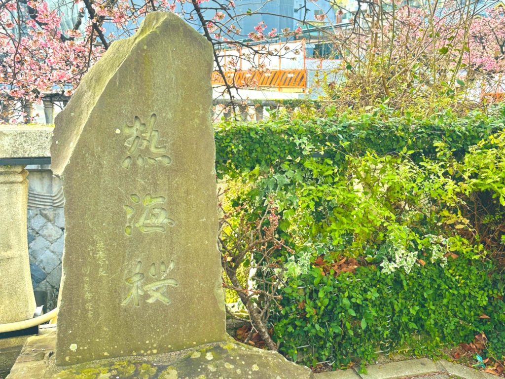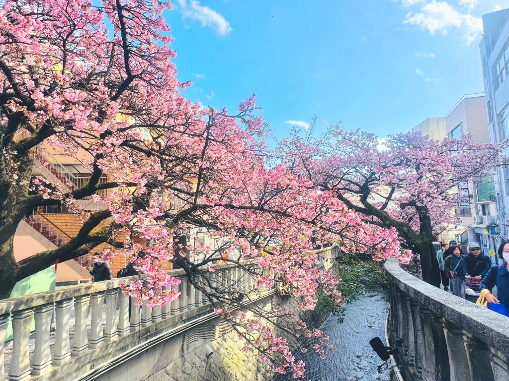 桜が咲いていない時期でも遊歩道沿いを歩いてみると、穏やかな気持ちになる熱海のスポットなのですが、あたみ桜が咲いている時期に来ると、いつもの風景に桜の花と冬の澄んだ空気が溶け合う感じが、どこか心をやさしくしてくれます。