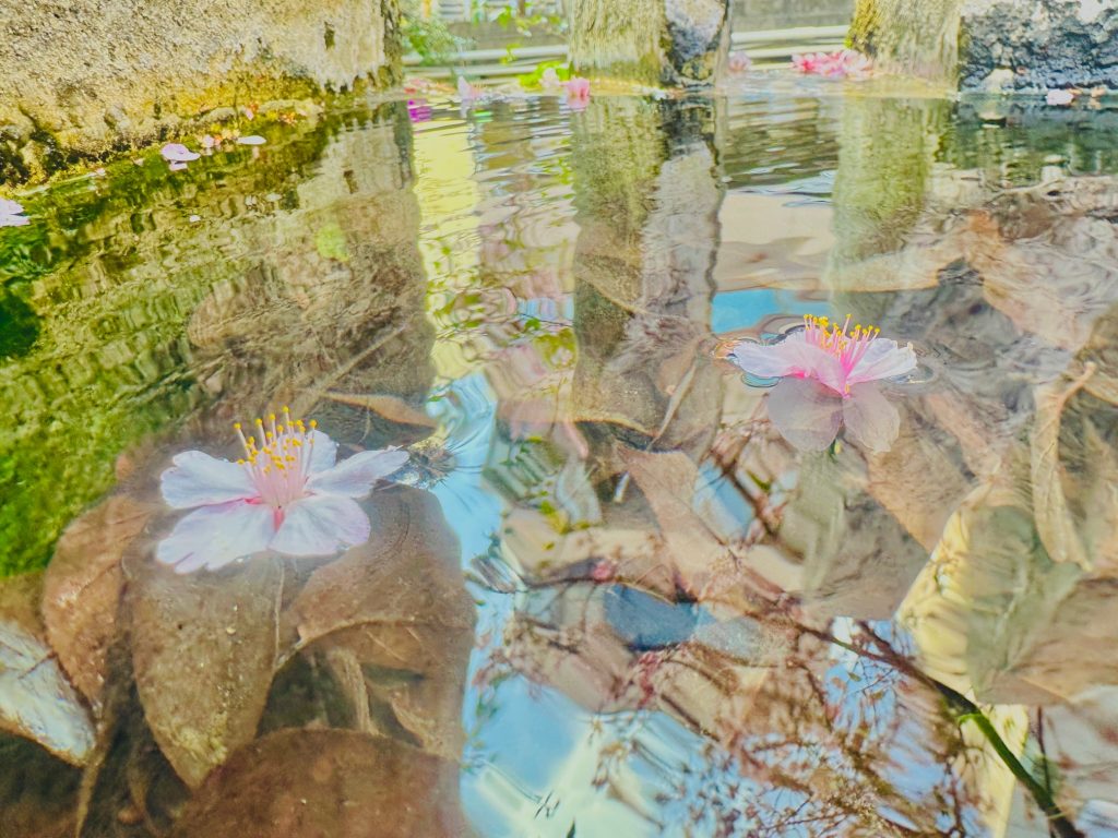 遊歩道の途中に水が湧いているところがあるのですが、桜の花びらが水面に浮かんでいて可愛かったです(^^