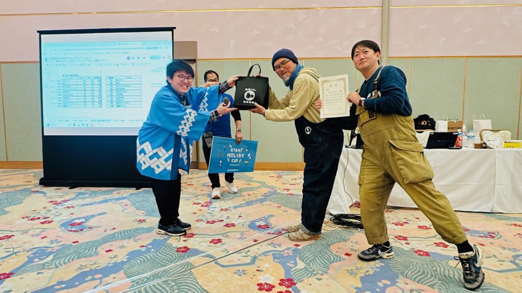 試合が終わった後は結果発表ということで、準優勝の方には熱海温泉まんじゅうなどを、優勝の方には熱海プリン6個セットを贈呈させていただきました!