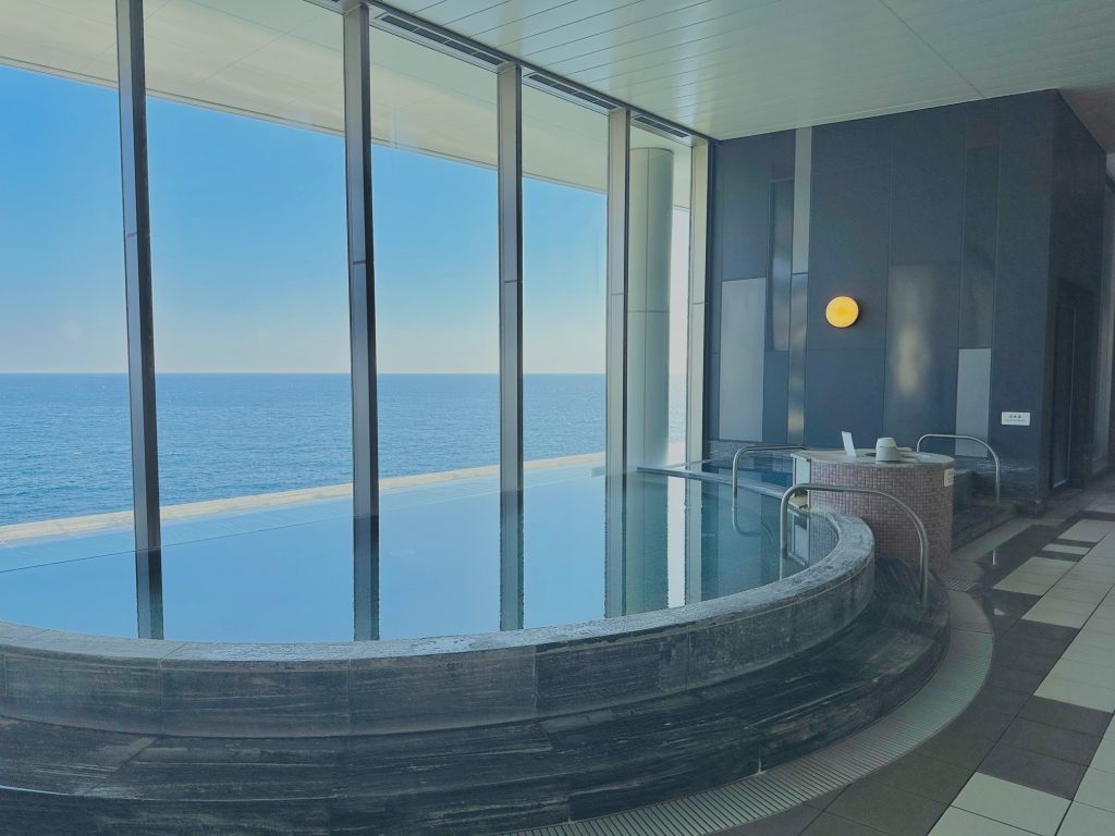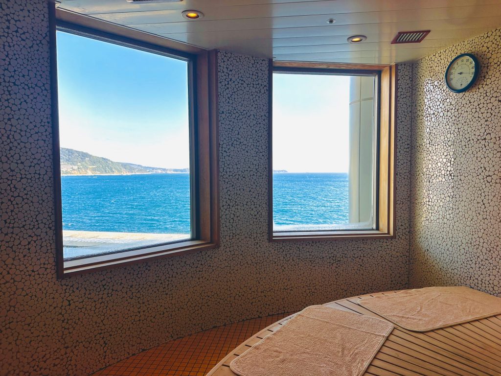 また、温泉の他にも「展望サウナ」もございまして、なんとこちらのサウナは室内のガラスから海を眺めることができてしまうのです…。何という贅沢( ゚Д゚)